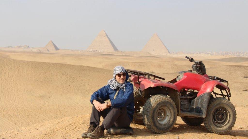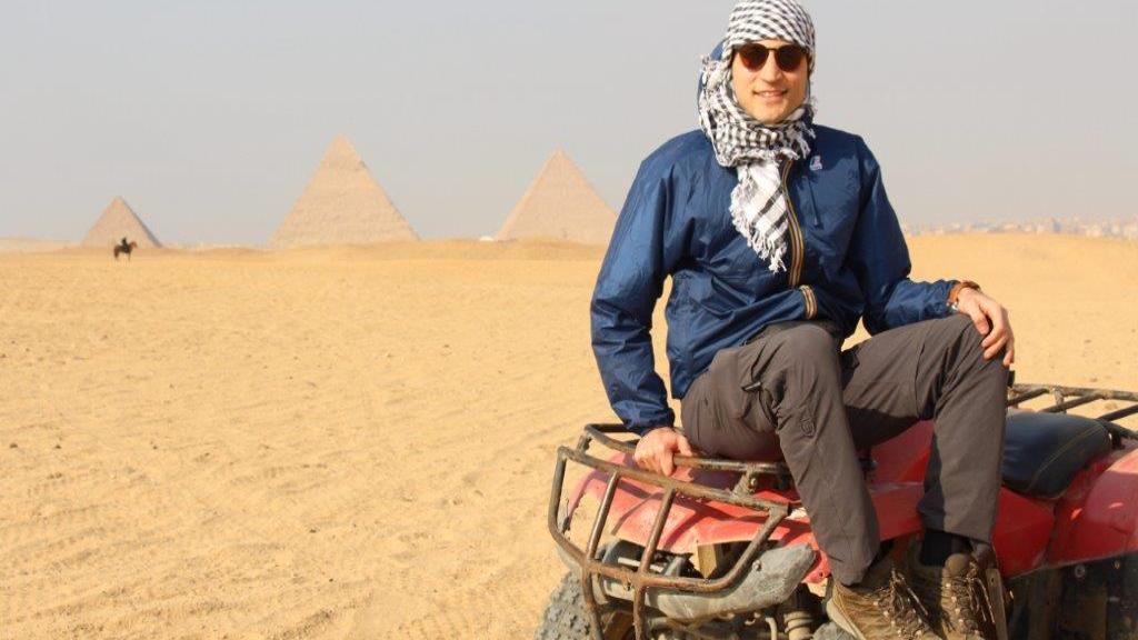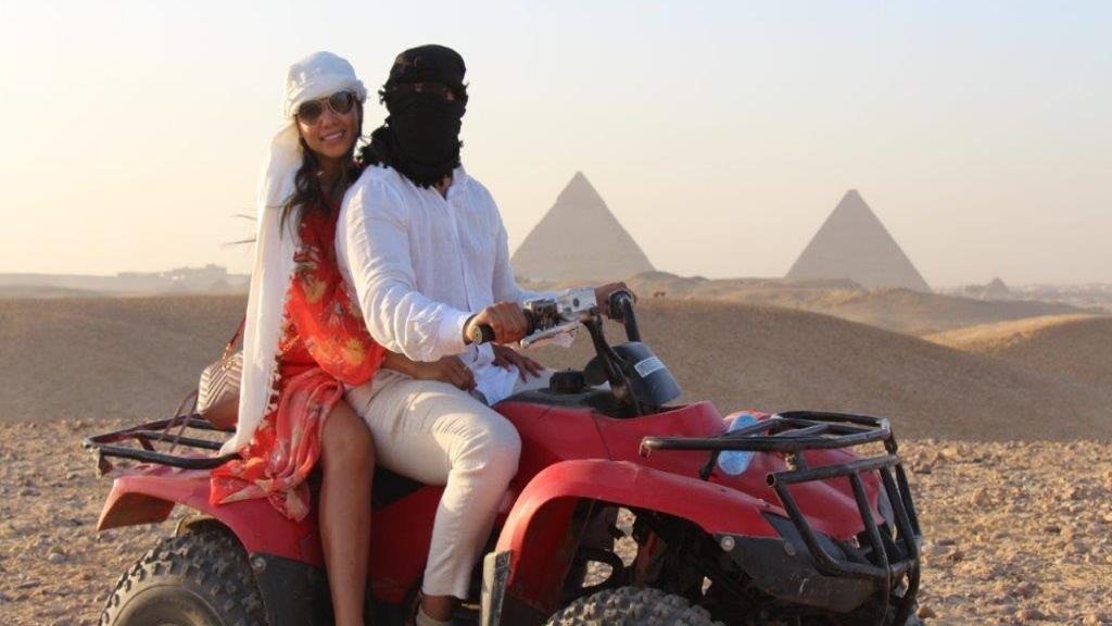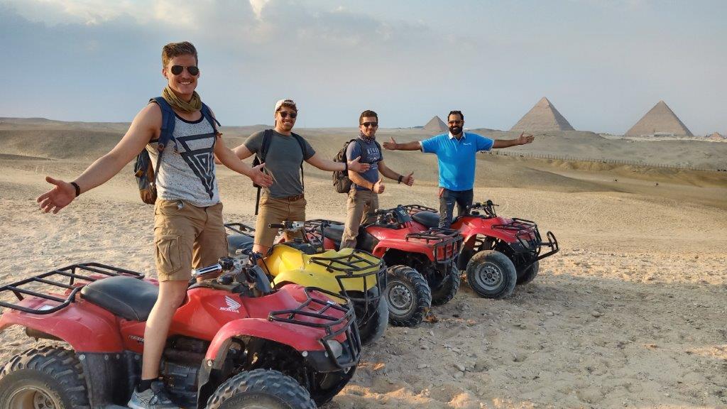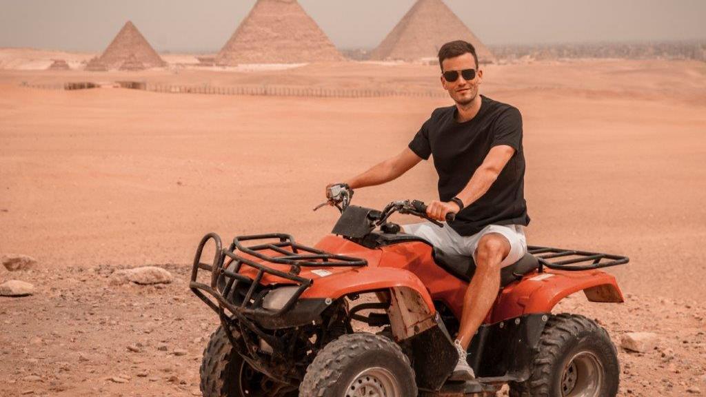 A su llegada, súbase a un quad y salga a explorar por las Pirámides de Giza de cerca. Conduzca su quad alrededor de las pirámides y contemple las Pirámides de Keops, Micerino y Kefrén desde fuera del área de las Pirámides.