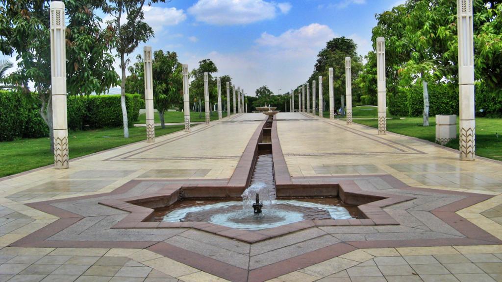 Los diseñadores integraron las tradiciones paisajísticas islámicas tanto en su diseño como en la elección de la vegetación, permitiendo así que el antiguo flujo de la ciudad volviera a la vida. Elementos persas y timúridas reflejan en los canales de agua y las fuentes.