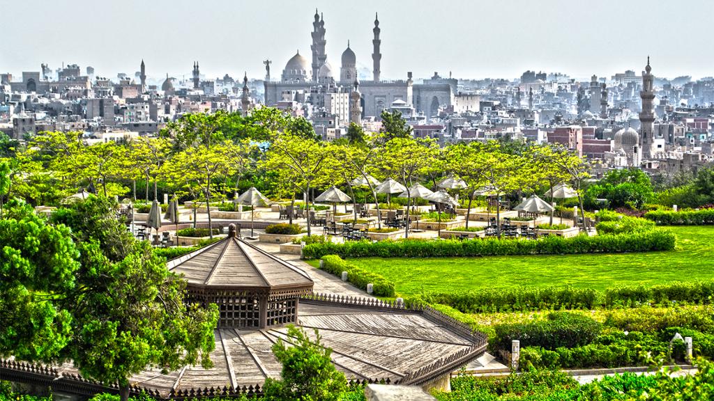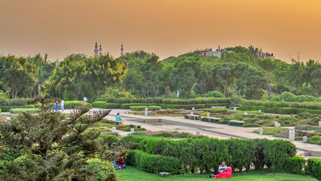 Descubra El Cairo de noche. Le llevaremos en coche a Al Azhar Park, en pleno corazón del Cairo Histórico.