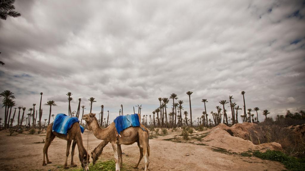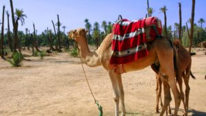 Aléjate del bullicio de la ciudad y mímate con un paseo en camello rodeado de palmeras en el Palmeral de Marrakech. Ponte tu chech (pañuelo) y la gandora para proteger la piel del sol y las arenas del desierto y sigue los pasos de tu guía mientras te mueves hacia las orillas del Tensift.
