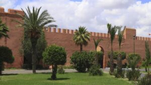 La muralla cuenta con unos 10 kilómetros de longitud y una altura que oscila entre los 10 metros, por lo que es uno de los principales atractivos de Marrakech. De sus 10 puertas, Bab Khemis es la más afamada, y muchas han servido de inspiración para otras ciudades marroquíes.